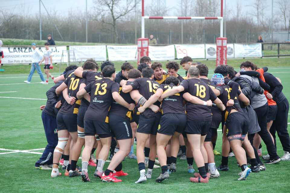 L’under 18 vince di misura a Colorno (31-33) al termine di una dai due volti (31-33). Gli emiliani partono a spron battuto trovando quattro mete di fila dal 6’ al 22’ e segnando la sfida in modo apparentemente decisivo, ma il risveglio dei leoni è letale e nell’aria. Dopo la marcatura biancorossa che fissa il parziale di 24 punti a 0 per i padroni di casa; il viadanese Aiello inizia a ricucire lo strappo colornese con due mete a stretto giro di posta a cui fa seguito Tassone al 39 e con due mete trasformate su tre i ragazzi di coach Bronzini a -5. Al ritorno in campo dagli spogliatoi i gialloneri accelerano e vanno a segno con il tallonatore Caleffi a cui si aggiunge la trasformazione di Bertorello che segna il sorpasso, seppur di due sole lunghezze di un Viadana che pare aver ritrovato le proprie certezze, ma Colorno si riporta avanti con il controsorpasso allo scoccare dell’ora di gioco, ma le emozioni non sono finite con i gialloneri che danno un’ultima e definitiva prova di forza con la meta tecnica al 61’ trasformata da Bertorello che fissa il finale sul 31-33.